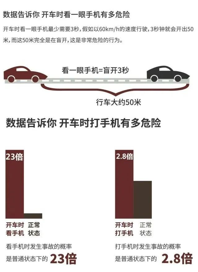 ● 驾驶人的注意力被分散,反应出现滞后,容易导致道路交通事故。