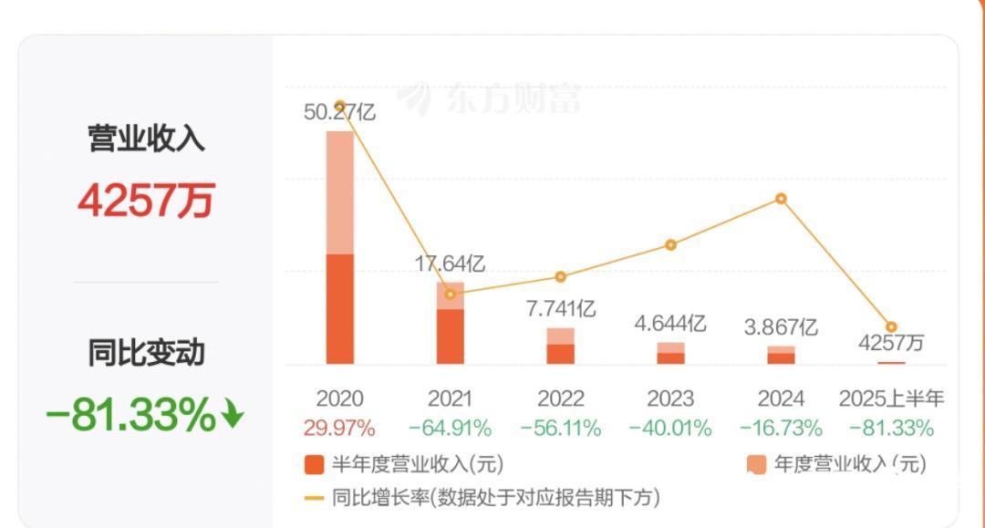 与巅峰时期相比,有棵树如今的规模大幅收缩。报告期内,有棵树2025年上半年营业收入为4257.34万元,与上年同期的22808.02万元相比,减少了18550.68万元,降幅达81.33%。公司指出,跨境电商主要运营主体资金压力大,致使跨境电商业务销售规模持续下降,这是营收下滑主因。